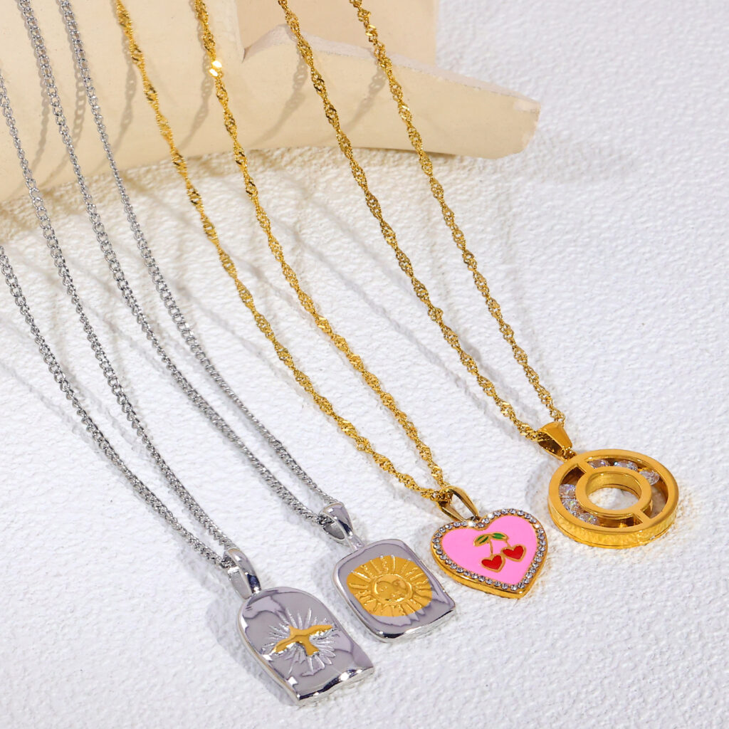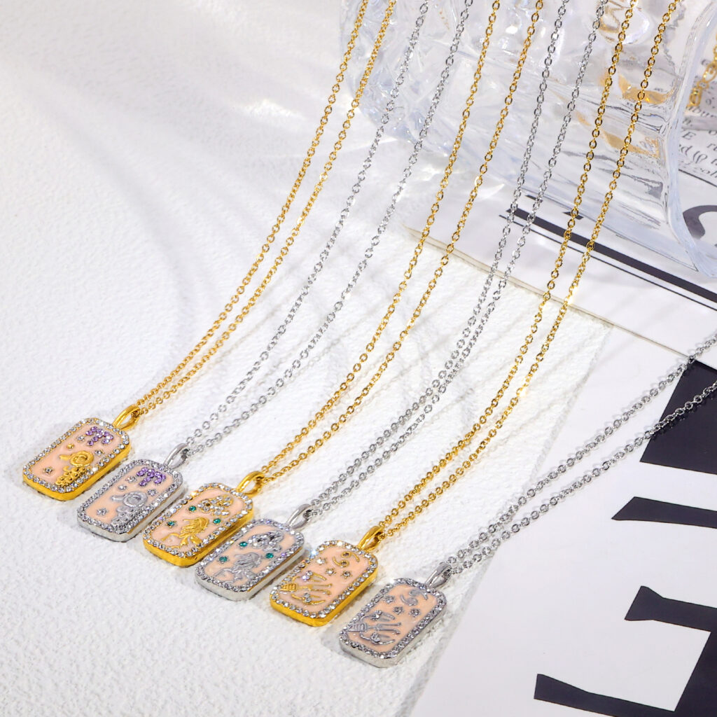 18K PVD Tschechische Steine & Emaille,Handgefertigte Halskette aus poliertem Edelstahl