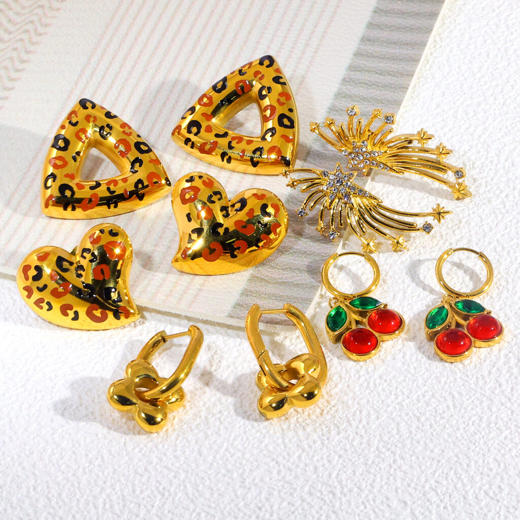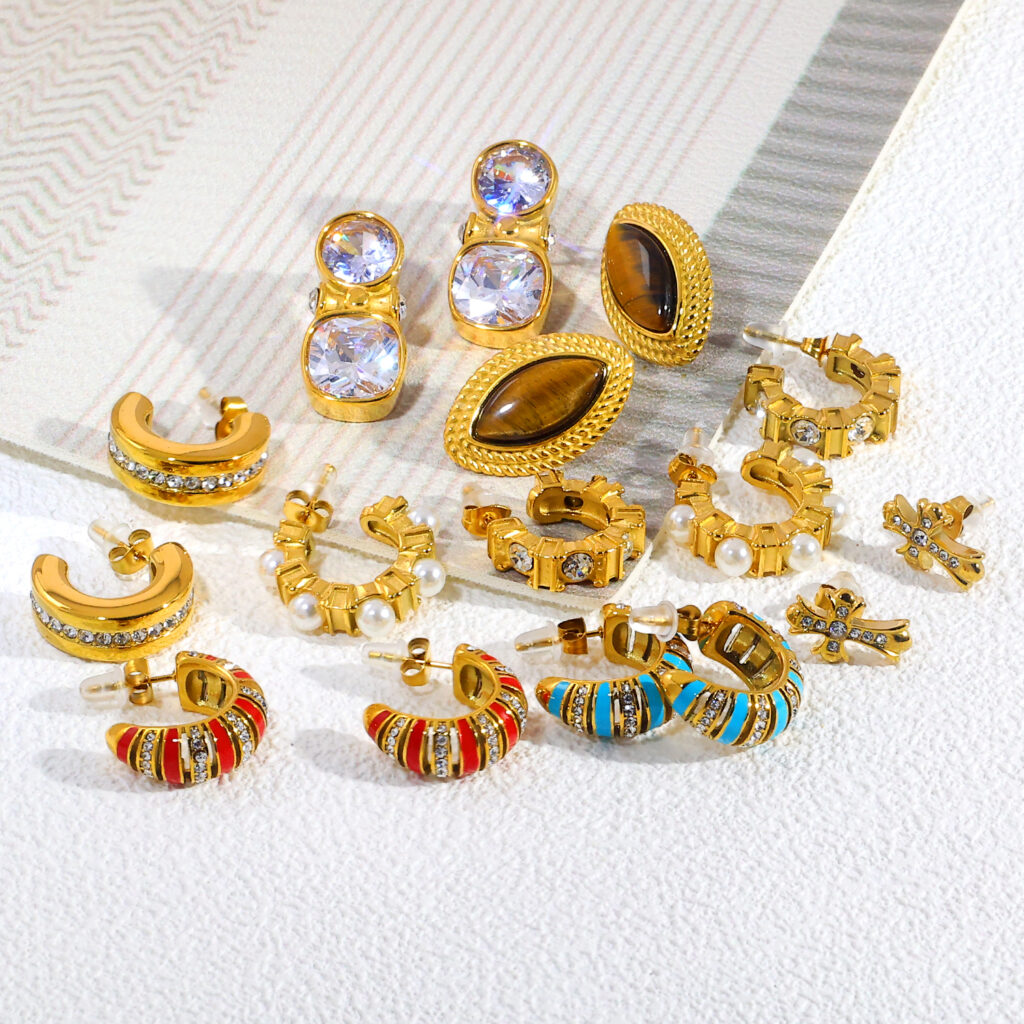 316 Pin Ojo de tigre PVD de 18 quilates,Pendientes de acero inoxidable pulido hechos a mano