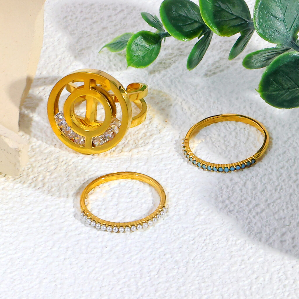 18K PVD Circón,Anillo de acero inoxidable pulido hecho a mano