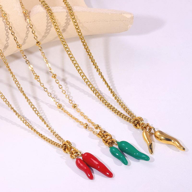 Enamel Chili Stainless Steel Necklace