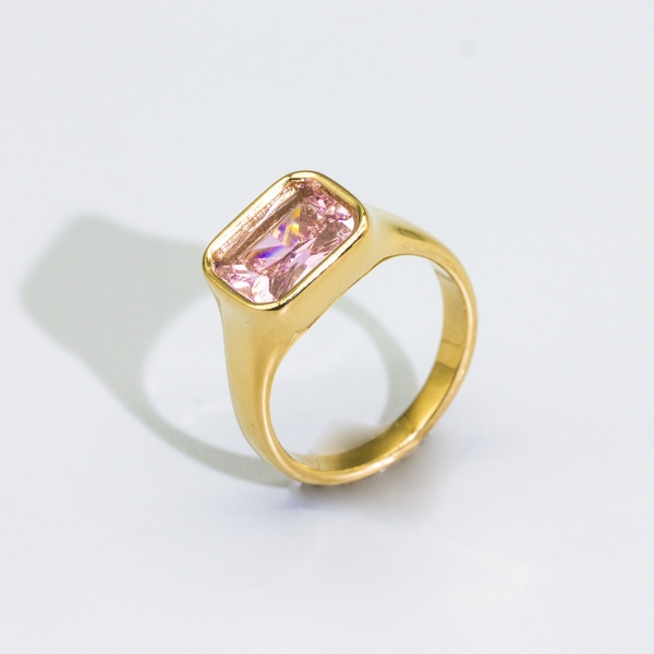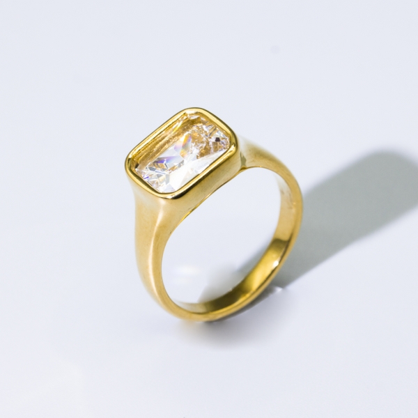 Stainless steel 18K crystal zirconia cube exquisite ring